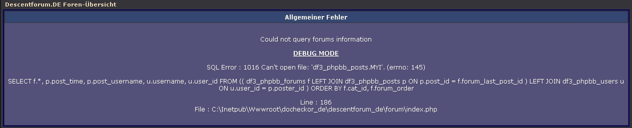 Jor - kommt schon mal vor - ist man mal einen Nachmittag/Früh-Abend nicht zu Hause gehts hier drunter und drüber - leider kann nur ICH Datenbankfehler beheben ...