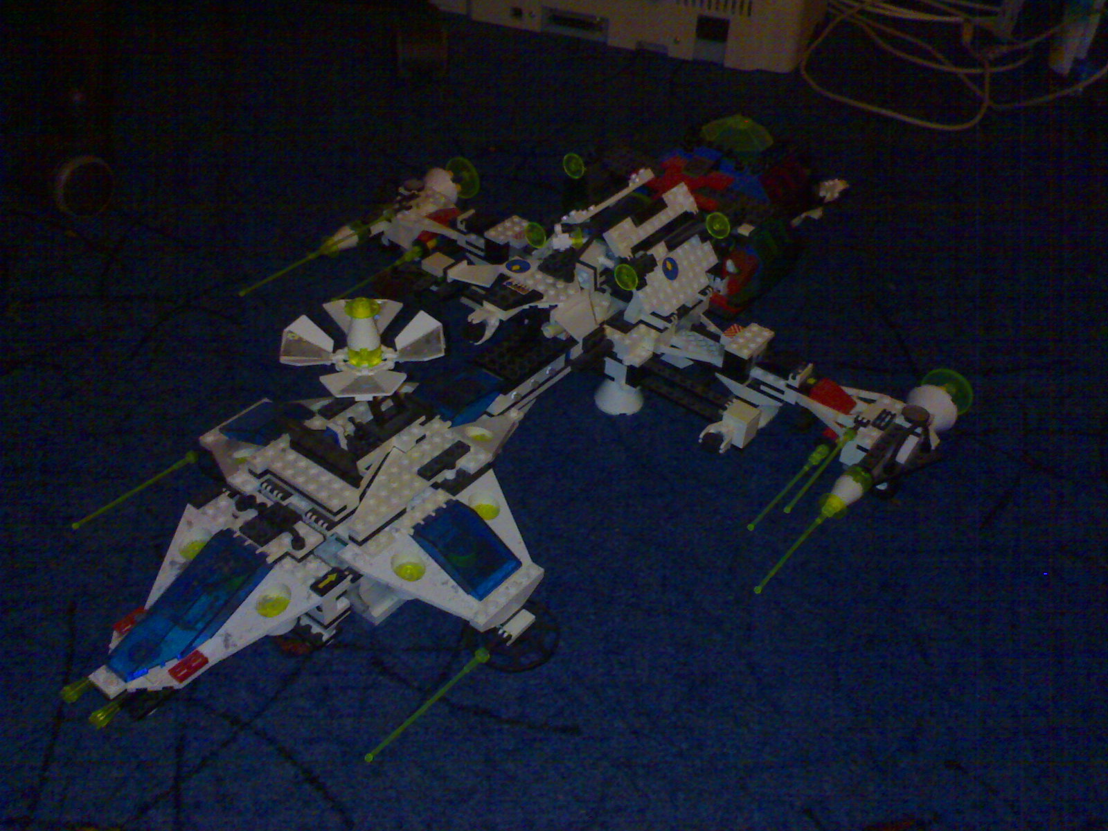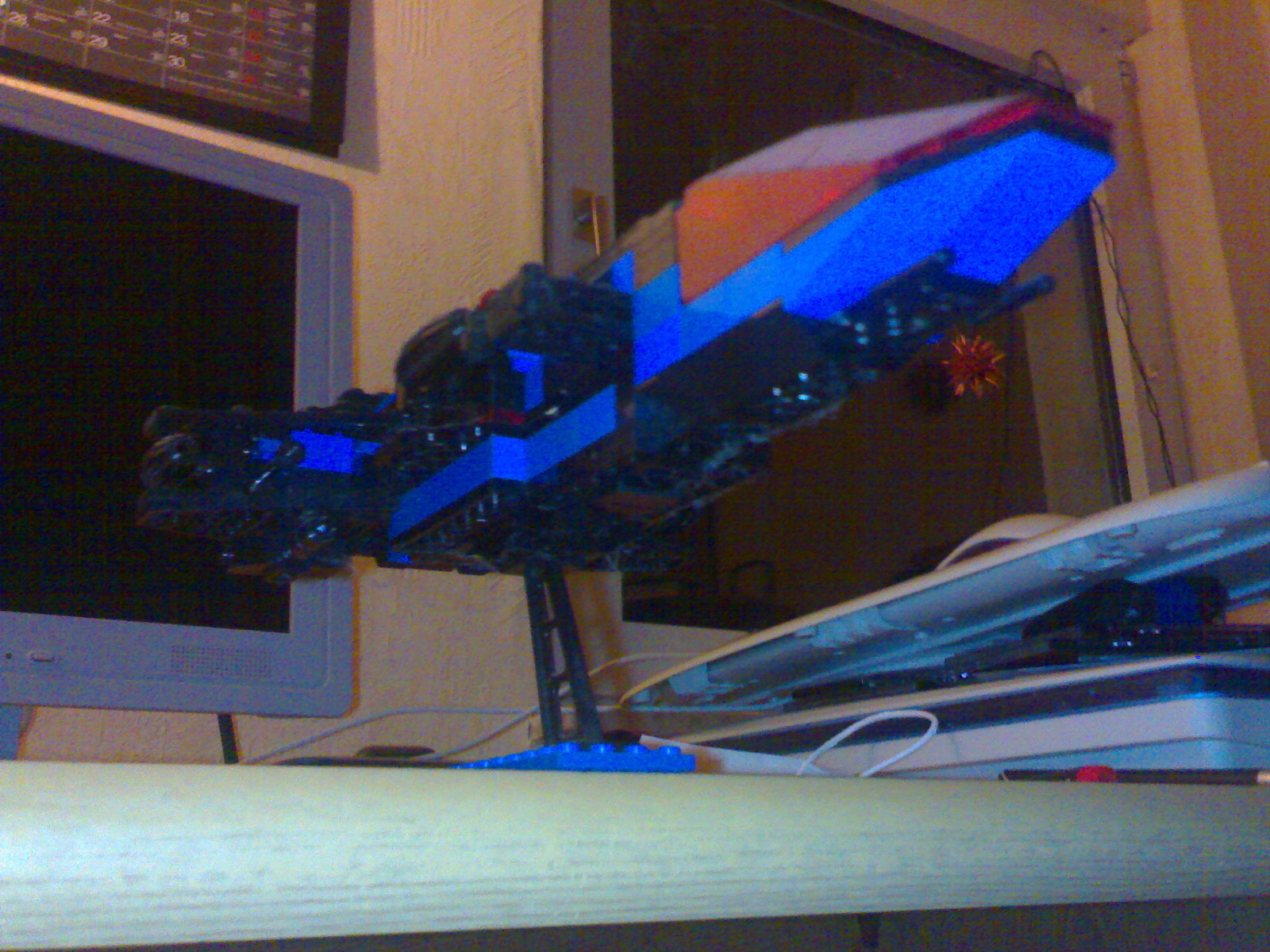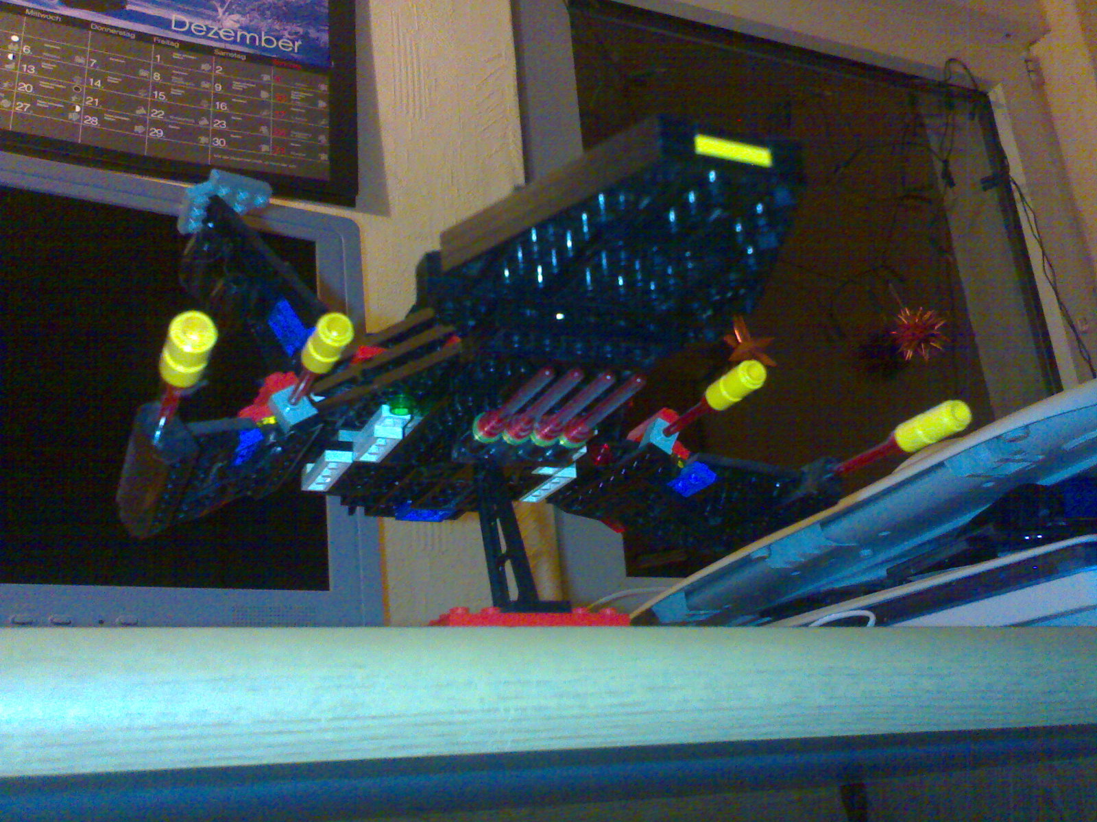 Schräg Heckansicht der Expediator. Das Schiff gab es zeitweise auch mit Kopplung zwischen Bug- und Hecksektion, aber aufgrund Instabilitäten in der Statik des Modells musste ich diese Funktion wieder entfernen.