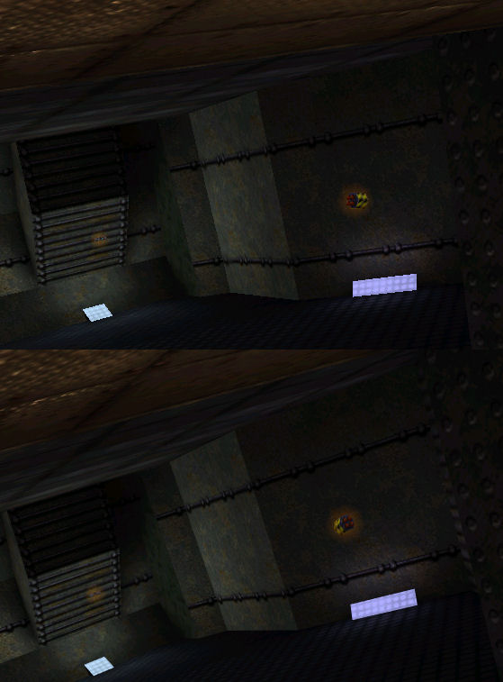 | ebenfalls erkennt man an dieser "gitterstruktur" oder was auch immer das ist (über der lampe), dass die streifen im oberen bild ungleichmäßig dick aussehen und im unteren gleichmäßig. bei einem zaun, den man im spitzen winkel betrachtet, ist das eigentlich noch am besten zu sehen.