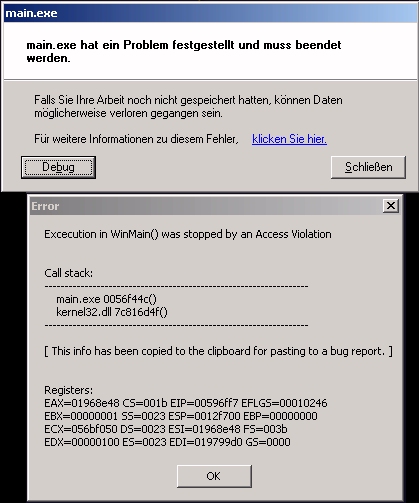Das Einzige was ich festgestellt habe, nach dem Beenden von Descent3 schmiert die Main.exe ab. (Oder sonstirgenwas anderes)