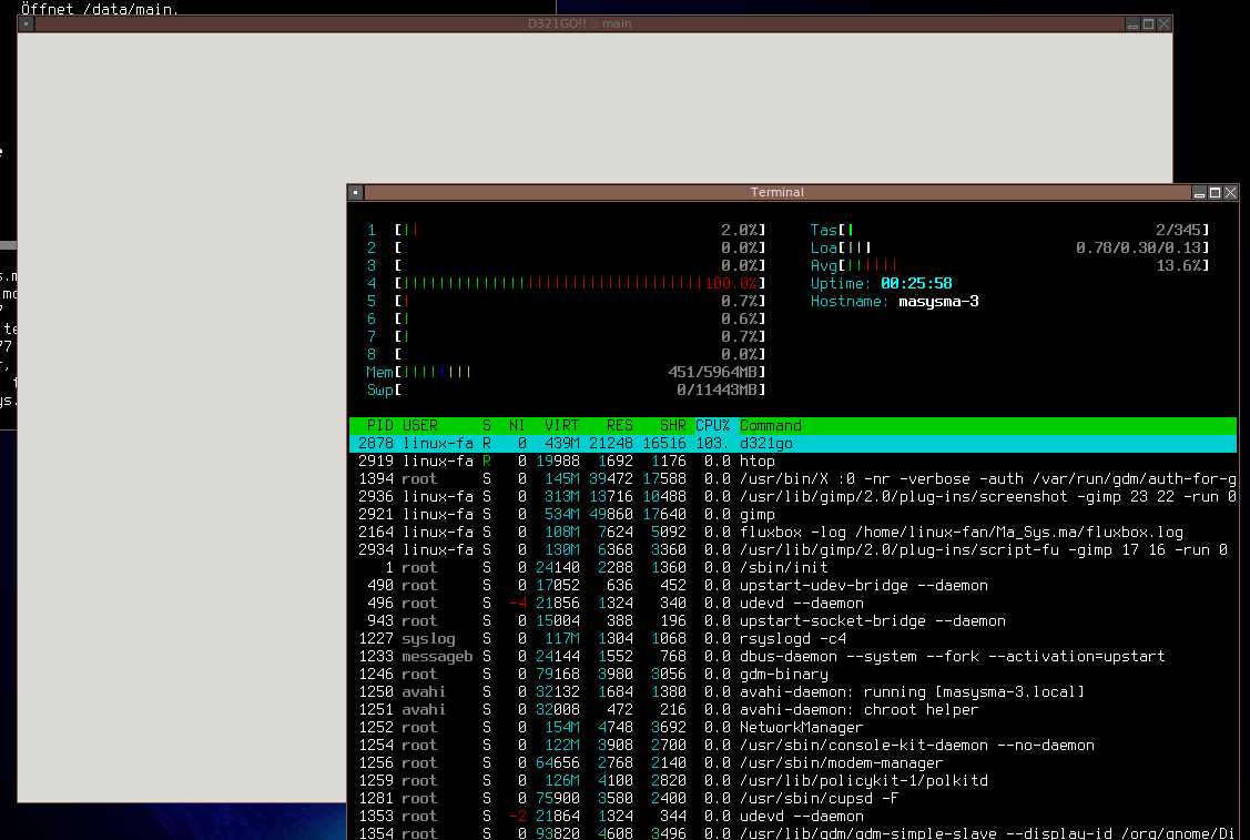 Seit einiger Zeit läuft d321go nicht mehr korrekt: Ich kann zwar noch Tracker auswählen, wenn ich dann auf GO klicke steht im Terminal immer "Calling fseek[...]" und das Programm stürzt offenbar ab: Es belegt 100% Prozessorlast auf einem Kern und es tut sich nichts. Das Problem tritt immer auf, wenn ich Descent3 (zum onlinespielen) starten will! Wenn ich keinen Tracker auswähle, startet Descent3 wie gewohnt.