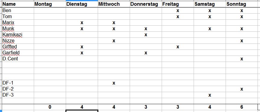 Evtl. sollten wir doch noch eine Umfrage mit Mehrfachauswahl machen - bei mir passen z.B. Sonntag - Donnerstag jeweils gleich gut. Da ich nur einen Tag wählen kann, habe ich den genommen, der mir am besten gefällt, aber an den anderen Tagen geht es natürlich trotzdem