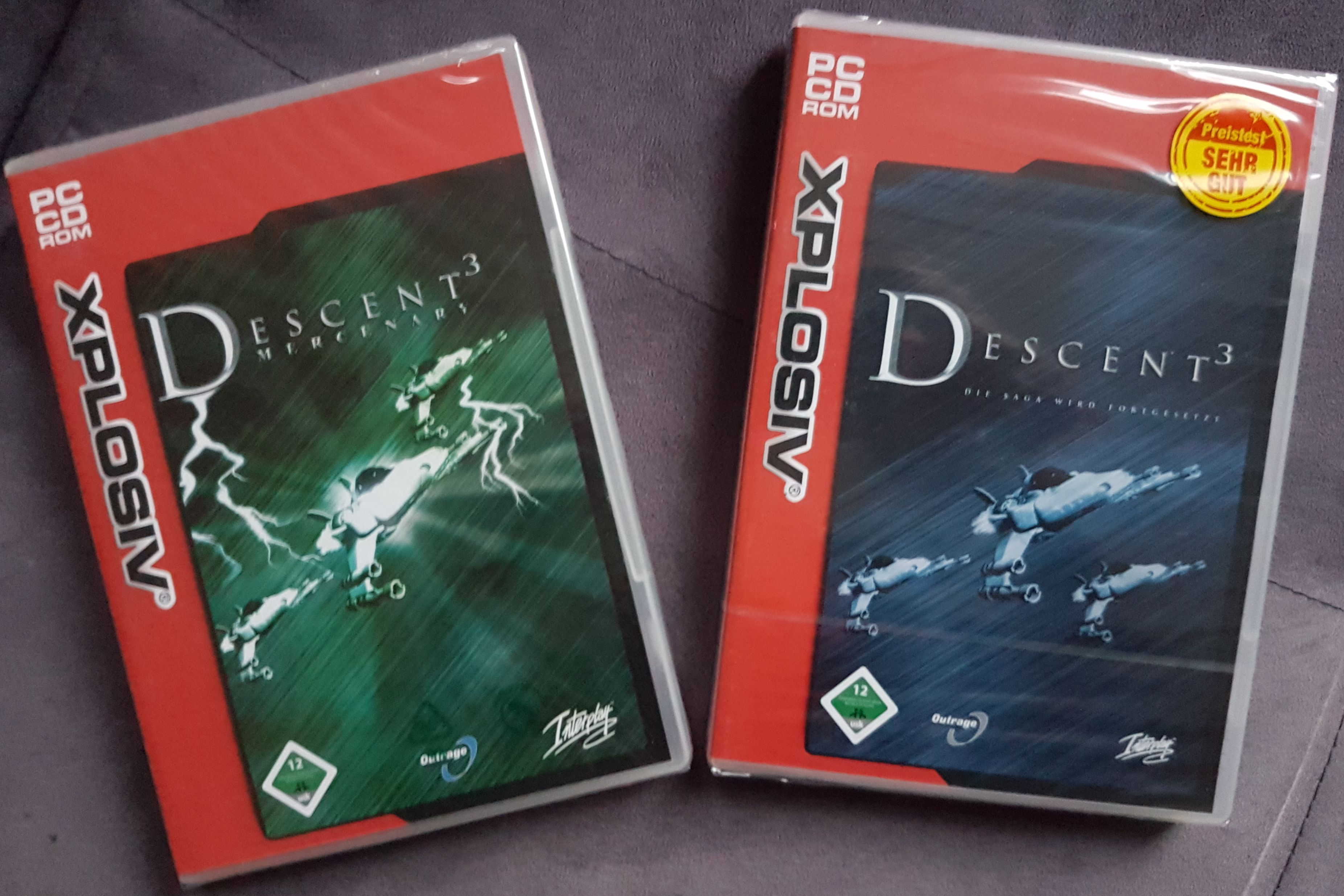 Vor einigen Jahren habe ich einmal einen größeren Bestand original-verpackter (-verschweißter) Descent 3 und D3 Mercenary Installations-CDs gekauft, da ich befürchtete, daß man sie sonst irgendwann nicht mehr bekommt.